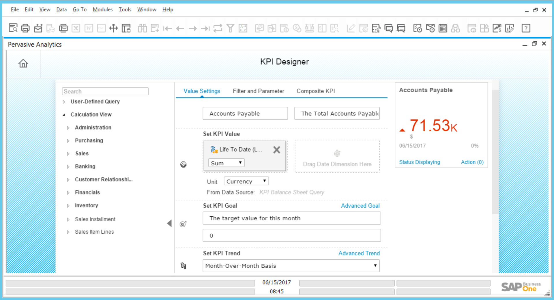 - SAP provides prebuilt KPIs but you can design your own in the Pervasive Analytics Designer.