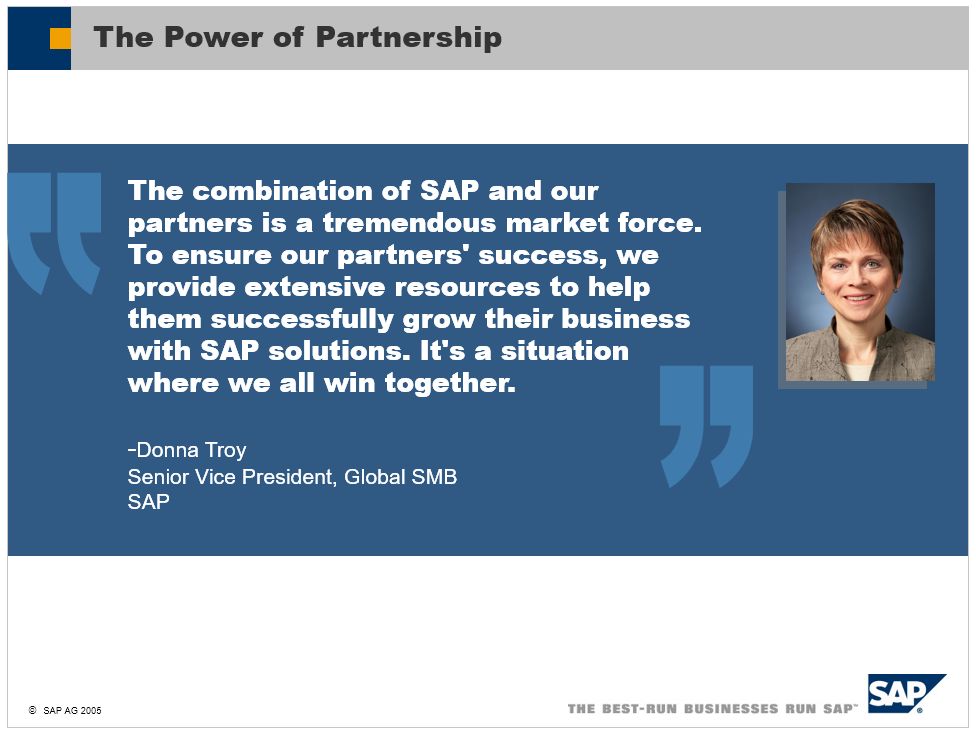 SAP executives knew that if they wanted to capture a bigger part of the SME market they had to appeal to partners, who would be the key to growing their market share against players like Microsoft, Oracle, Infor, Intuit, and others.