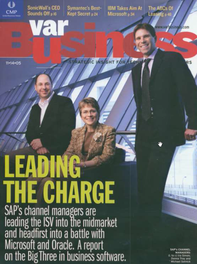 Ira’s plan worked. Industry analysts and partners were delighted to hear the news when Donna Troy and then SAP CEO Henning Kagermann made the announcement which told the story that SAP was serious about the channel and that it was serious about SMBs. We also secure the cover story of VARBusiness, which at the time was the world’s leading channel publication.