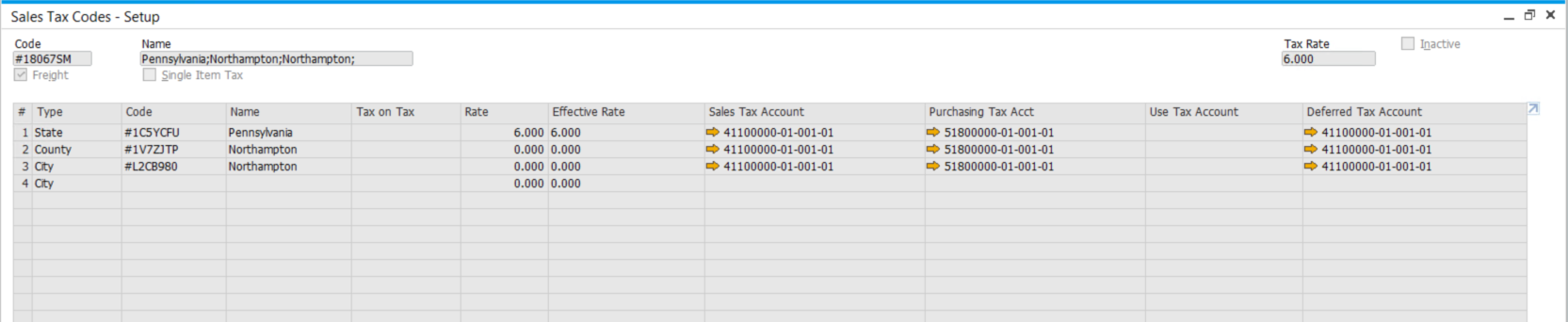 For example, from the example above, Maxi – Teq is located in 4417 Stonebridge Rd, Suite 500, Northampton, 18067, PA and enables TaaS. If we create an A/R Invoice and choose an item from the list, the Tax Code and the Tax amount will automatically show up.