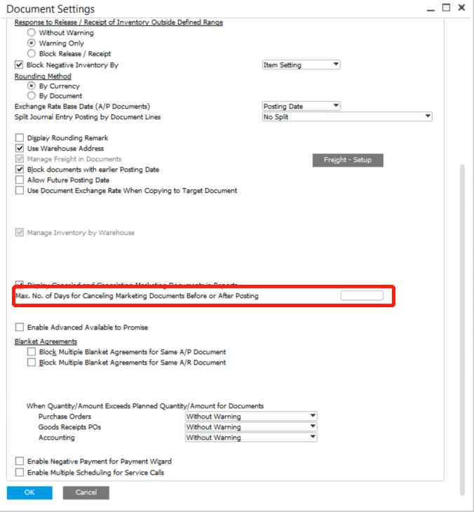 SAP Business One offers a helpful tool for managing canceling documents, “Max No. of Days for Canceling Marketing Documents Before or After Posting”. Go to Administration > System Initialization > Document Settings and click General tab.