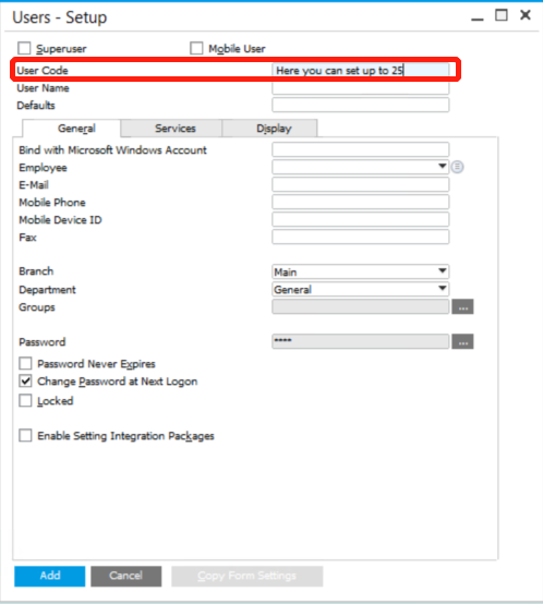 The length of user code in SAP Business One used to be 8 characters, but after SAP Business One 9.2, the length extends to 25!