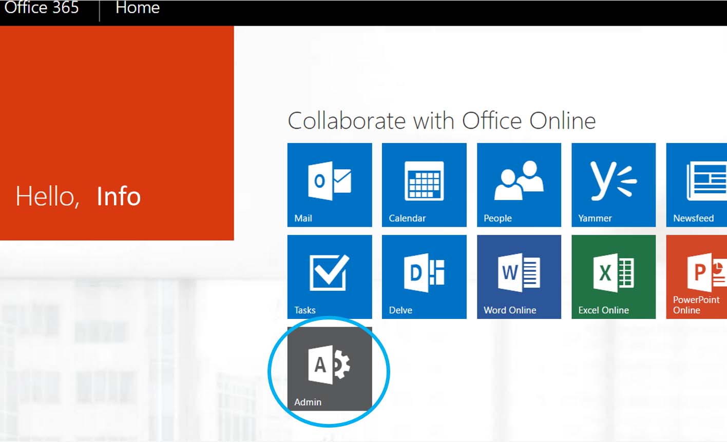 Step 1: Log in Office 365 web with admin account