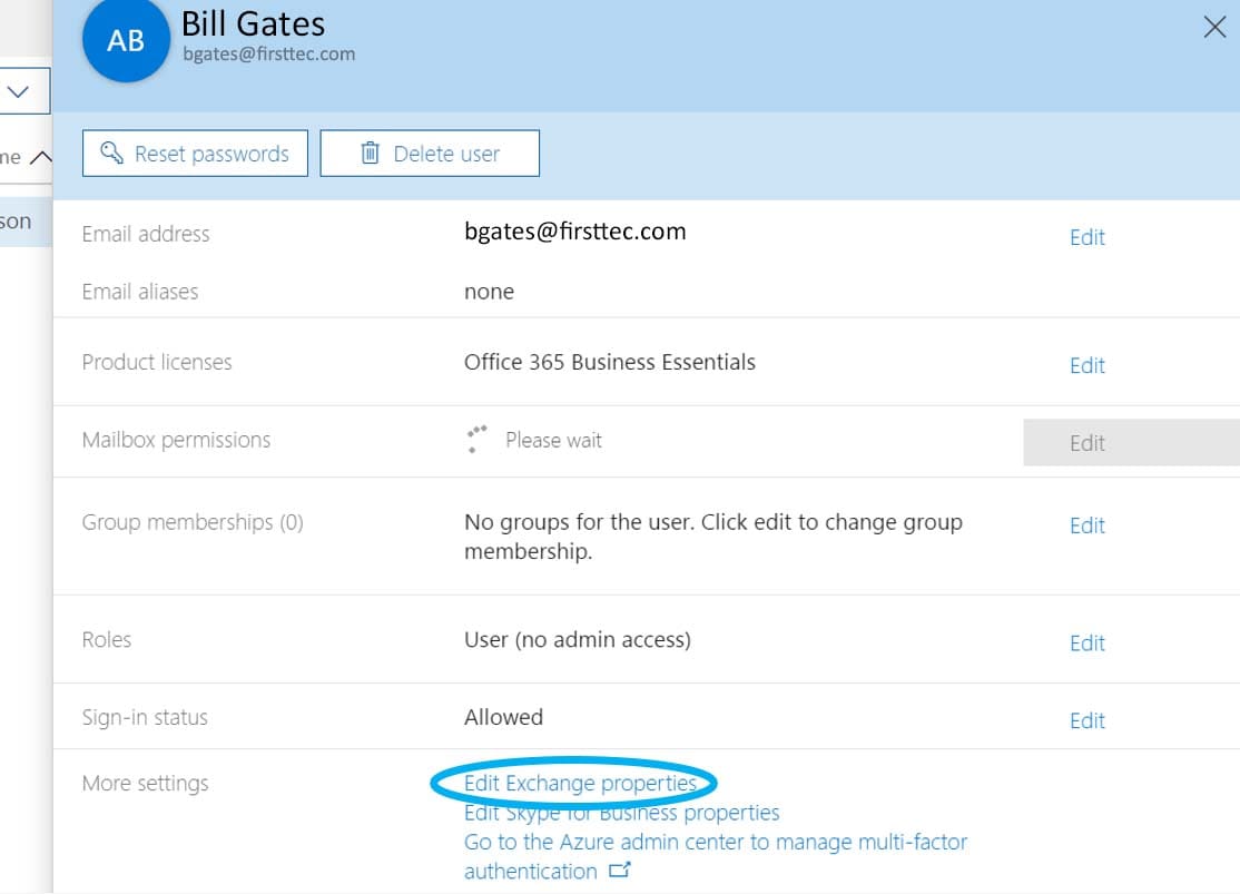 Step 2: Edit user account Exchange properties