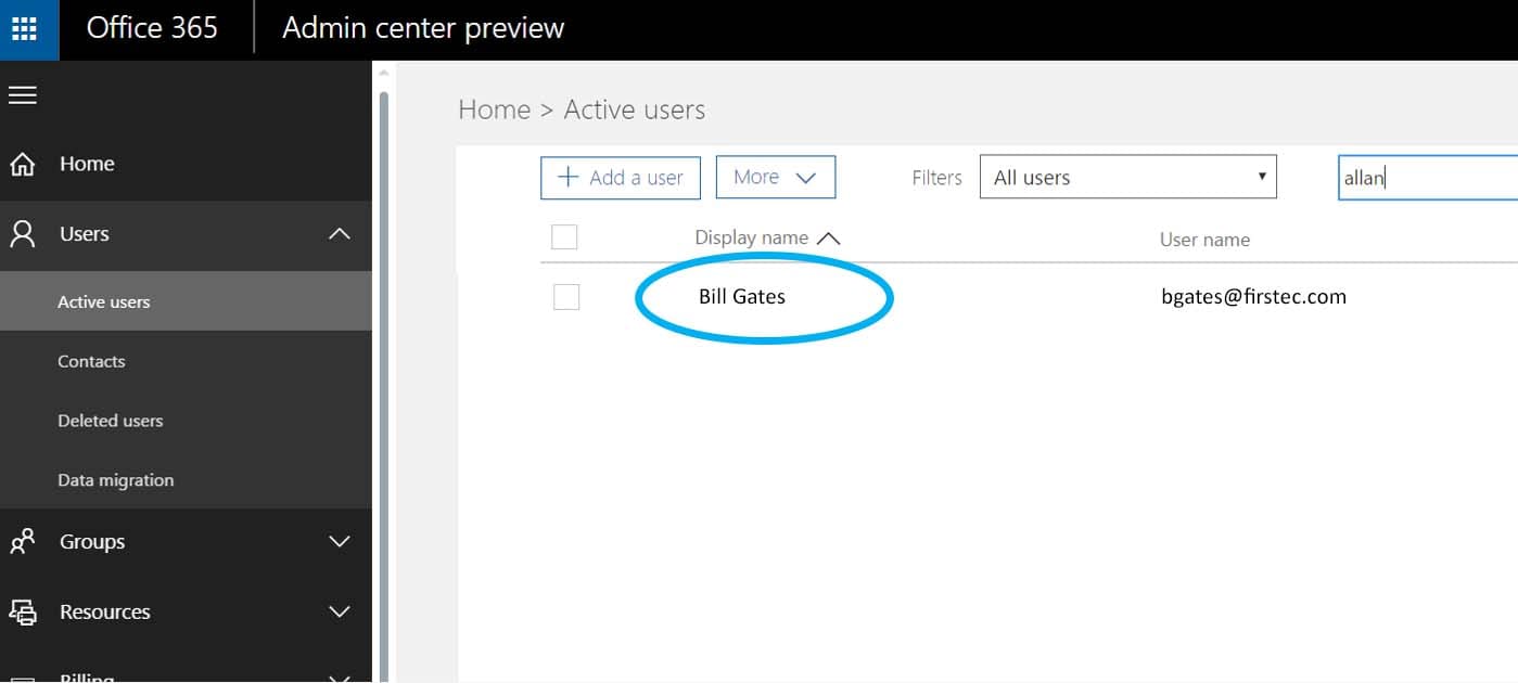 - Go to Users – Active users, and choose the user you want to be represented by the common Email ([email protected])