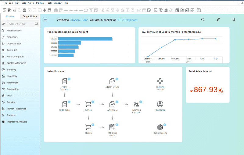 The power of SAP HANA is at the tip of your fingers! within just few clicks you can visualize the total sales, top 5 customers, and more data that reflects your business activities.